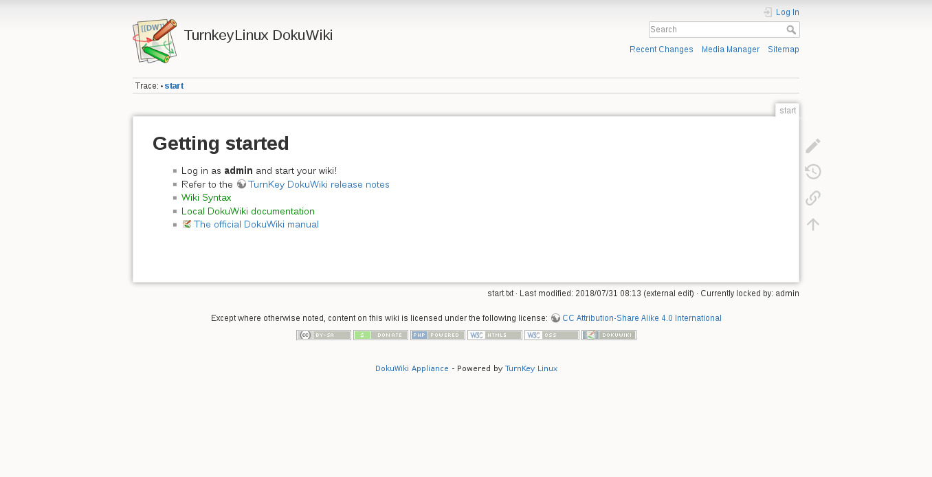 Примечание по безопасности . Обновления «Докувики» могут потребовать контроля, поэтому они НЕ НАСТРОЕНЫ на автоматическую установку. См. документацию DokuWiki, чтобы узнать, как выполнить обновление вручную или с помощью плагина обновления . Для дополнительной безопасности разрешения «ДокуВики» могут быть «заблокированы» — подробности см. на соответствующей странице документа .