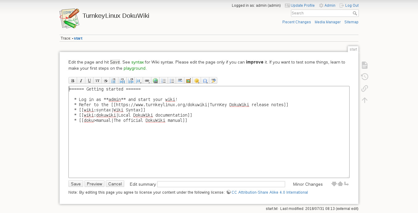 DokuWiki имеет простой, но мощный синтаксис (похожий на тот, который используется в MediaWiki), который гарантирует, что файлы данных останутся доступными для чтения за пределами вики, и упрощает создание структурированных текстов.