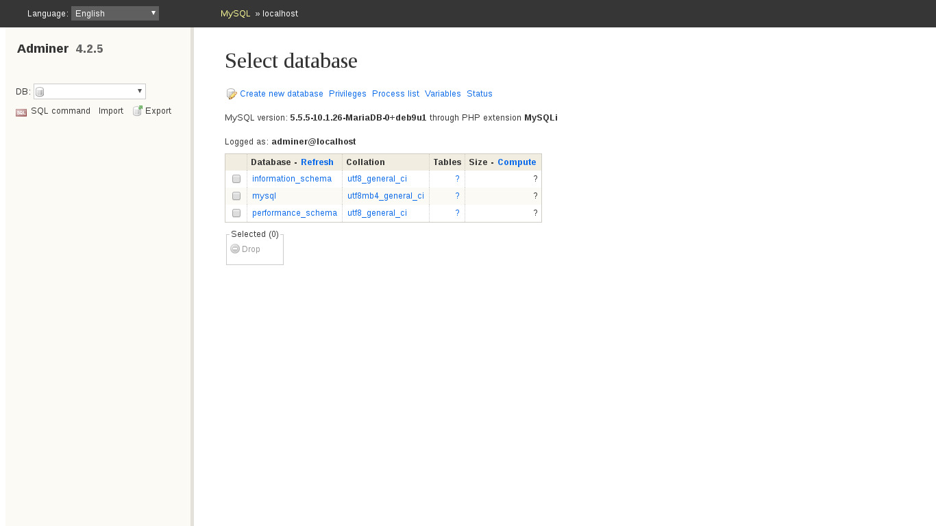 - Внешний интерфейс администратора для MySQL (MariaDB) (прослушивание порта 12322 — использует SSL).